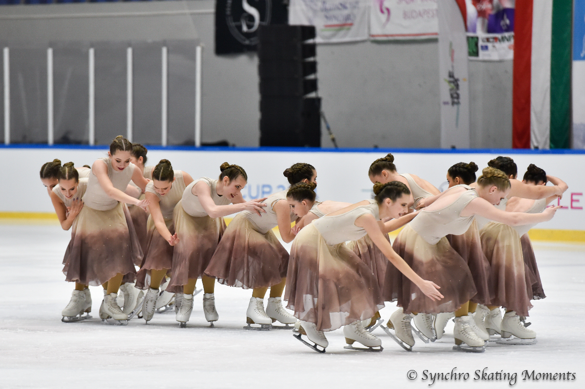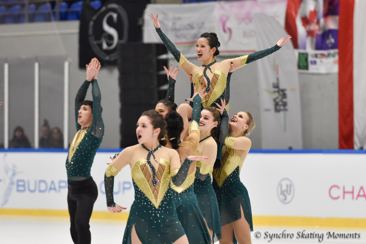 The top four teams' score difference was less than a point. Despite skaters’ falls, winner Hungarian Team UTE Synchro (39.92) won the game by a tiny margin against Czech Team Bublinky (39.44), Hungarian Team Pingvin (39.32) and Hungarian Team Magic (39.15). Team UTE Synchro has the highest technical score, but judges gave the first to third runners-up higher Program Component scores.