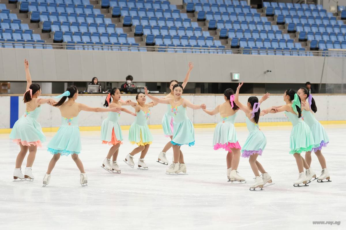 Toyohashi Synchro Sparkle is an Open Age team with 10 skaters. They competed on ice during the 34th Aichi Figure Skating Competition which was held on 8 December 2024. Their program this season is Disney’s “Journey to Fantasy Springs” which is paired with a kaleidoscopic display of pastel colour skirts. They skated cleaned without fall and earned 39.73 points.