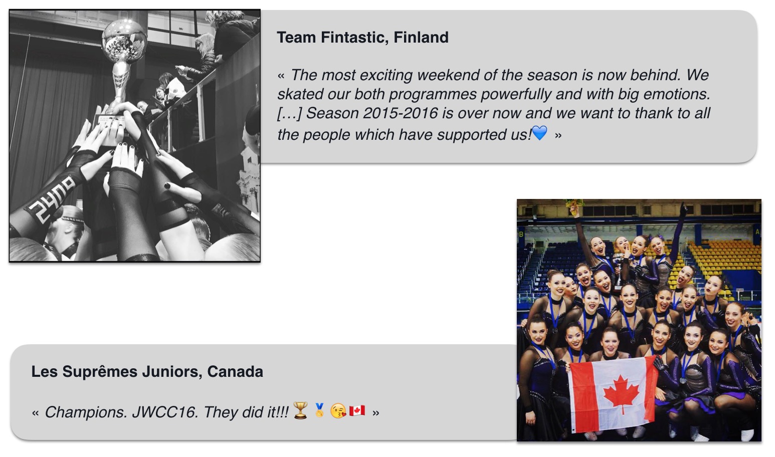 A new gold medal for the Canadians. Les Suprêmes Juniors from St-Léonard, Montréal, did the best in the two programs this weekend. They took the gold medal with 179,44 points. On the second place, the Finnish Team Fintastic (172,91 points) who present a great free program. The Russian team Yunost won the bronze. This team did a good performance especially in their short program (total score: 169,93 points).