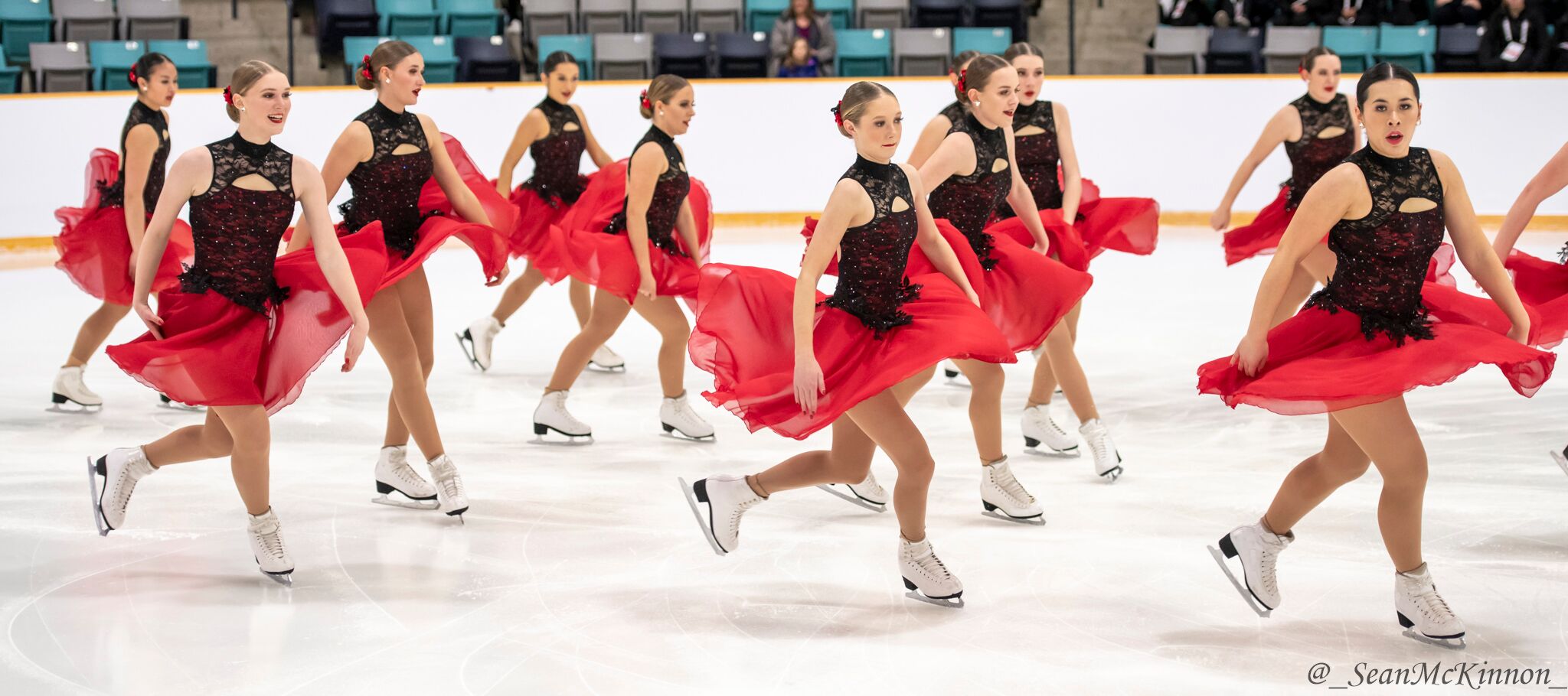 The Novice event kicked off the day, where Les Suprêmes (Québec) were able to overcome a tough season and put out a performance that earned them a top spot with a score of 67.58. The team has been the Canadian Novice Champions in 2014, 2015, 2016 and 2017 but has struggled this season to lay a flawless performance down on competition ice. Reigning Canadian champions, Nova (Quebec) claimed 2nd with 65.16, and Gold Ice (Ontario) skated a brilliant performance to the Mad Hatter, earning them third with 63.80.