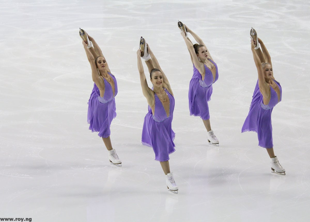 The actual World Champion, Team Russia 1, was the first team to skate in the last group. Coached by Irina Yakovleva and Alexander Yakovlev, Paradise was composed of 15 skaters presented « Listen » by Beyonce. With 72.62 points, they