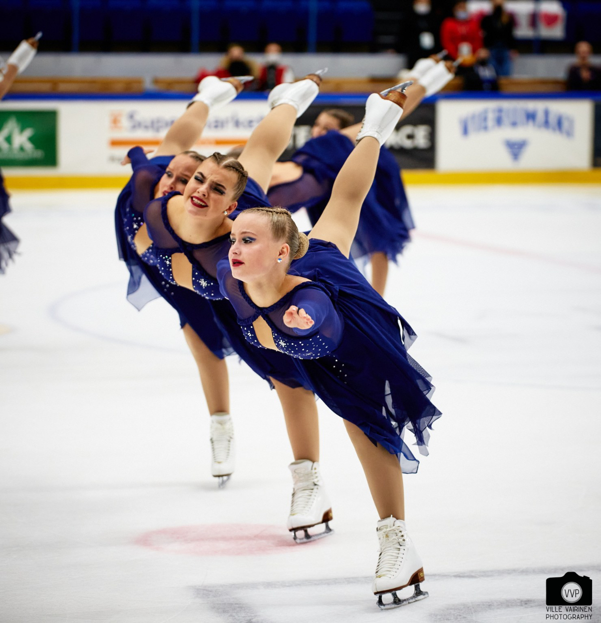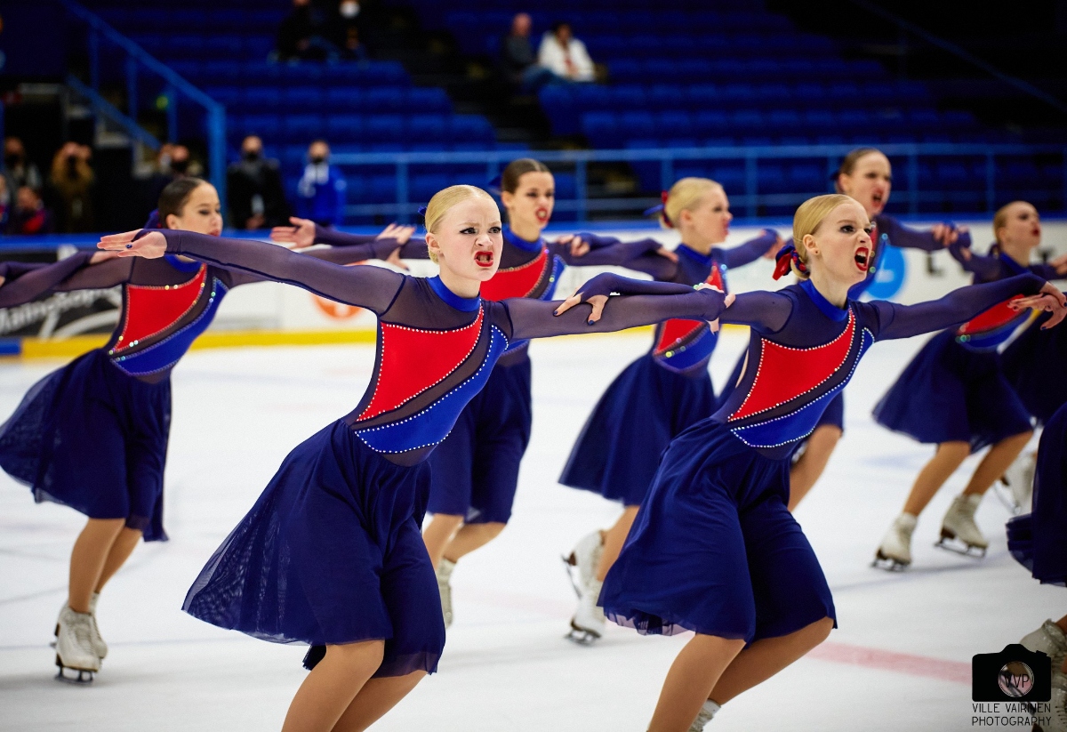 Helsinki Rockettes skated third. Their technic was good, and the interpretation was convincing. Their seductive appearance in the “Femme Fatale” program brought them 73.02 points and second place. There was one unfortunate fall in the program.