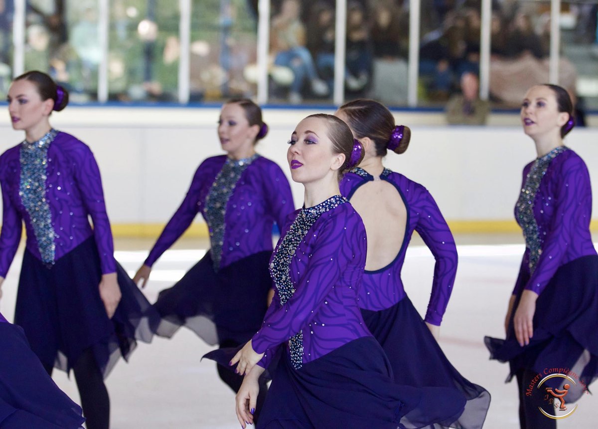 rnThe senior division gathered two teams. The senior Skating Graces skated their short program first just after their novice "little sisters". The team presented pretty transitions highlighting the strengths of skaters. The team scored 29.37 points and finished first in the category.