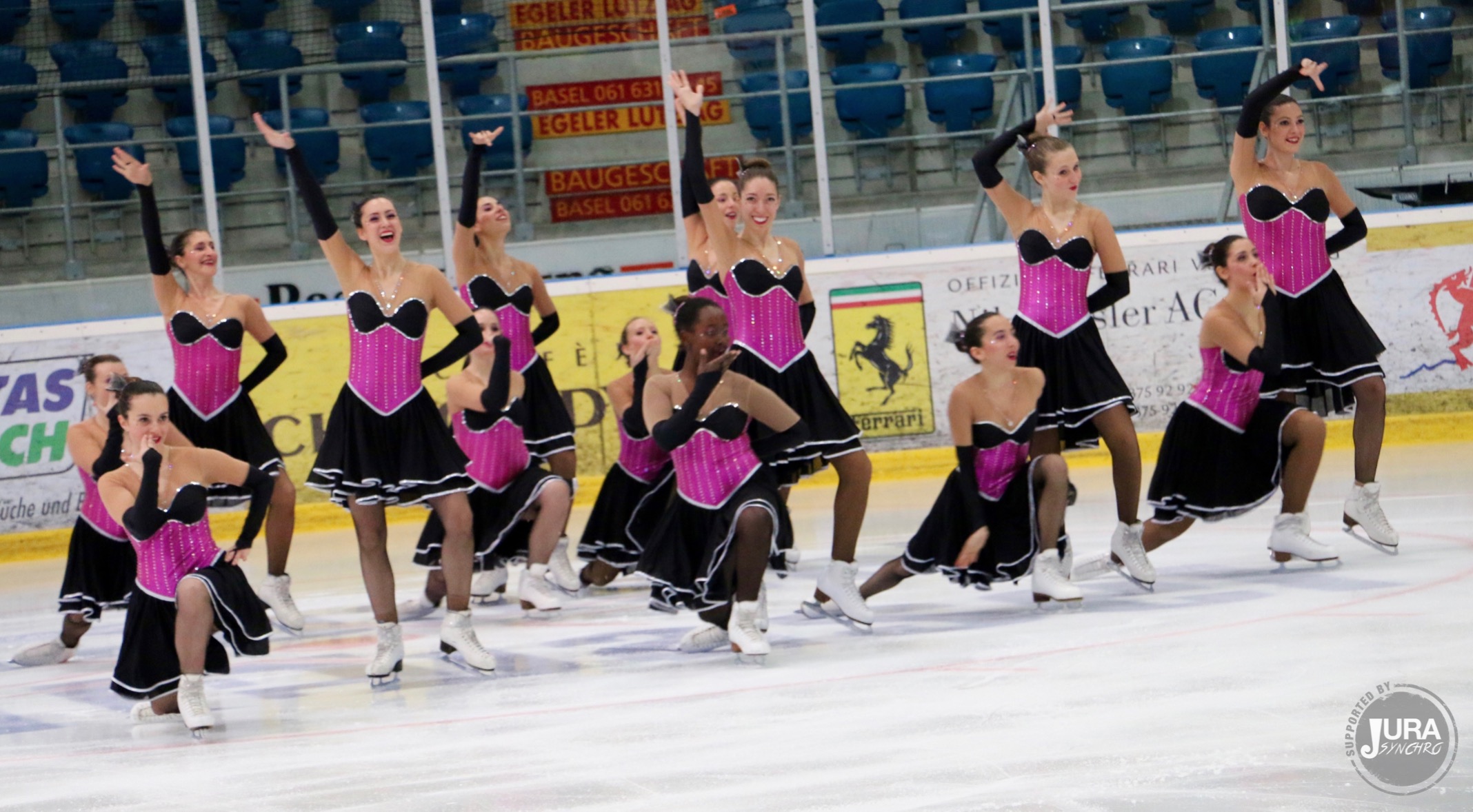 <p>The winners of the competition, Snowflakes (SUI) transformed the ice rink into a rally race. /Credits: Jura Synchro News</p>