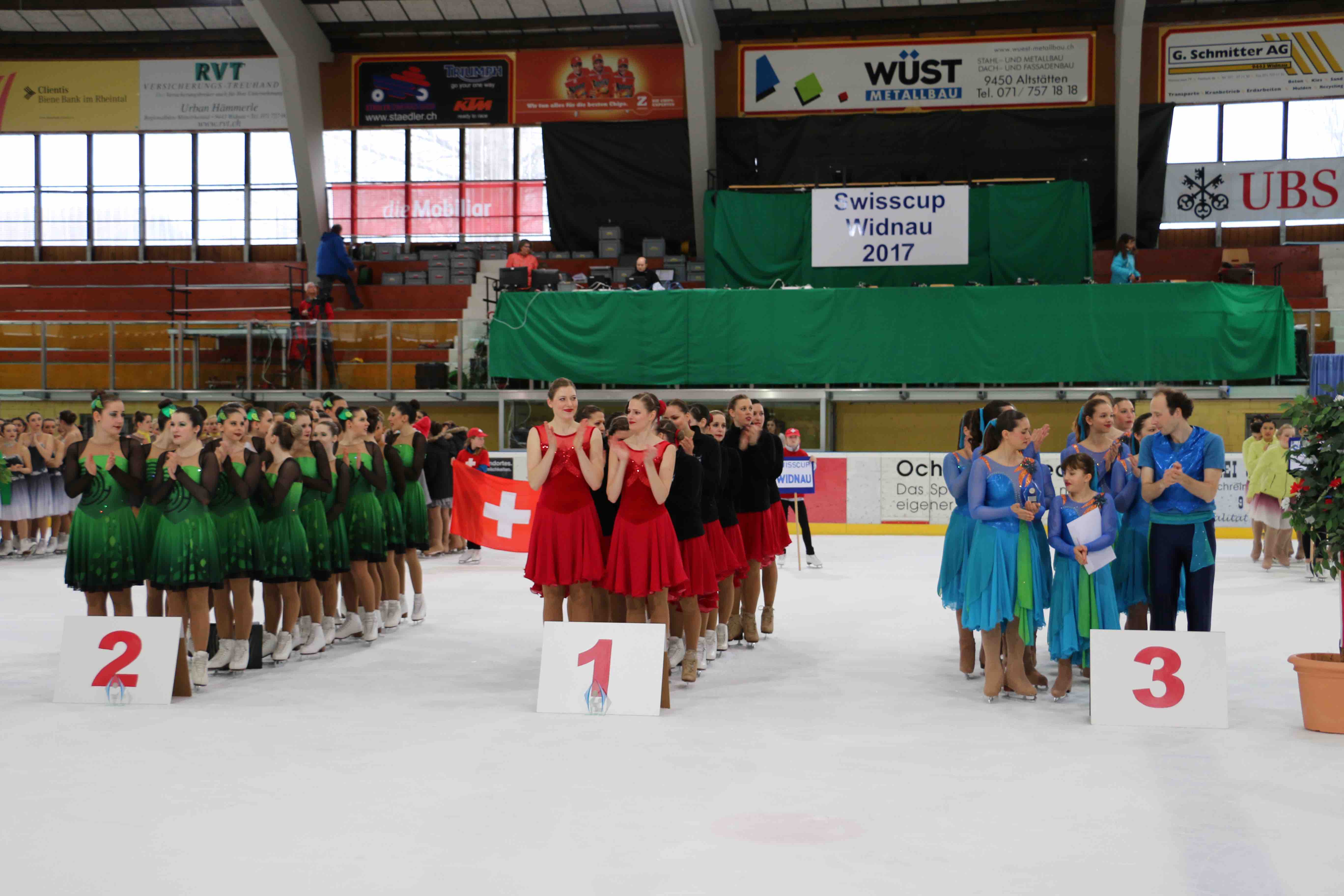 On Sunday, the non-ISU categories competed in Widnau. The Mixed Age division was the biggest field of the day with 10 teams. Again, the victory went to Olimpia Team from Como (ITA), the German team Starlets took the silver medal with a program on Sherlock Holmes and Starlight earned the bronze. Ice Storms from Mittelrheintal placed 4th, the new Swiss Team Ice Phoenix took the 5th position and Blue Unicorns, representing Germany finished 6th. The United Blades from Neuchâtel took the 7th place, Team Bernettes were just behind 8th, Team Volcano from Lausanne et Malley finished 9th and Fun on Ice completed the rankings.