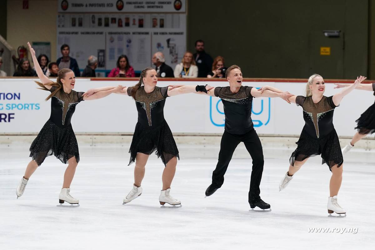 L'équipe suisse Starlight Diamonds (31.29) et les Suédois Dizharmony (28.87) ont également livré des programmes agréables sans chute. Les Suisses ont présenté une roue artistique avec un patineur central exécutant une pirouette tandis que l'équipe suédoise, vêtue de costumes orange vif, a impressionné le public avec leurs expressions.