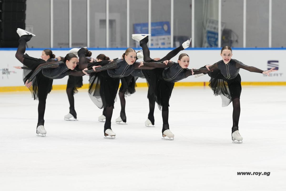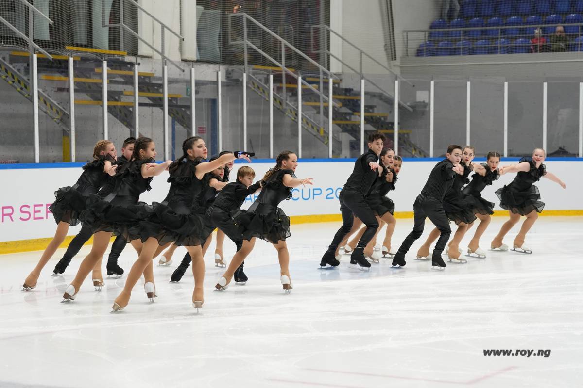 Le médaillé de bronze Team Ice Fire Basic Novice dans les spirales. (Crédits : Roy Ng - 2024)