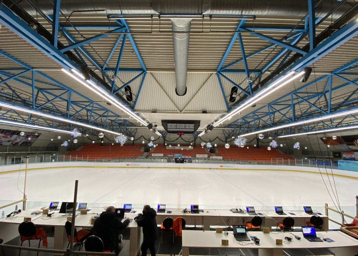 Althoughrnthere was no public allowed in the stands due to Covid-19, the atmosphere in thernarena was great. After their short programs, the junior teams stayed to cheer onrnthe senior teams.