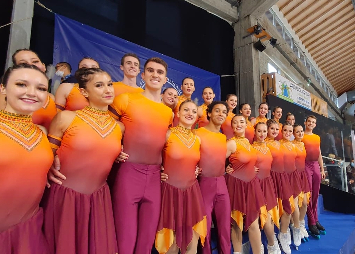 The Team Jeanne d'Arc from the Rouen Olympic club is in second place with 33.28 points. The team also presented its new dark and passionate new short program. Dressed in last year's blue costumes, the JDA team made a good first impression in front of the judges but probably did not achieve all the levels hoped for, especially for the intersection.