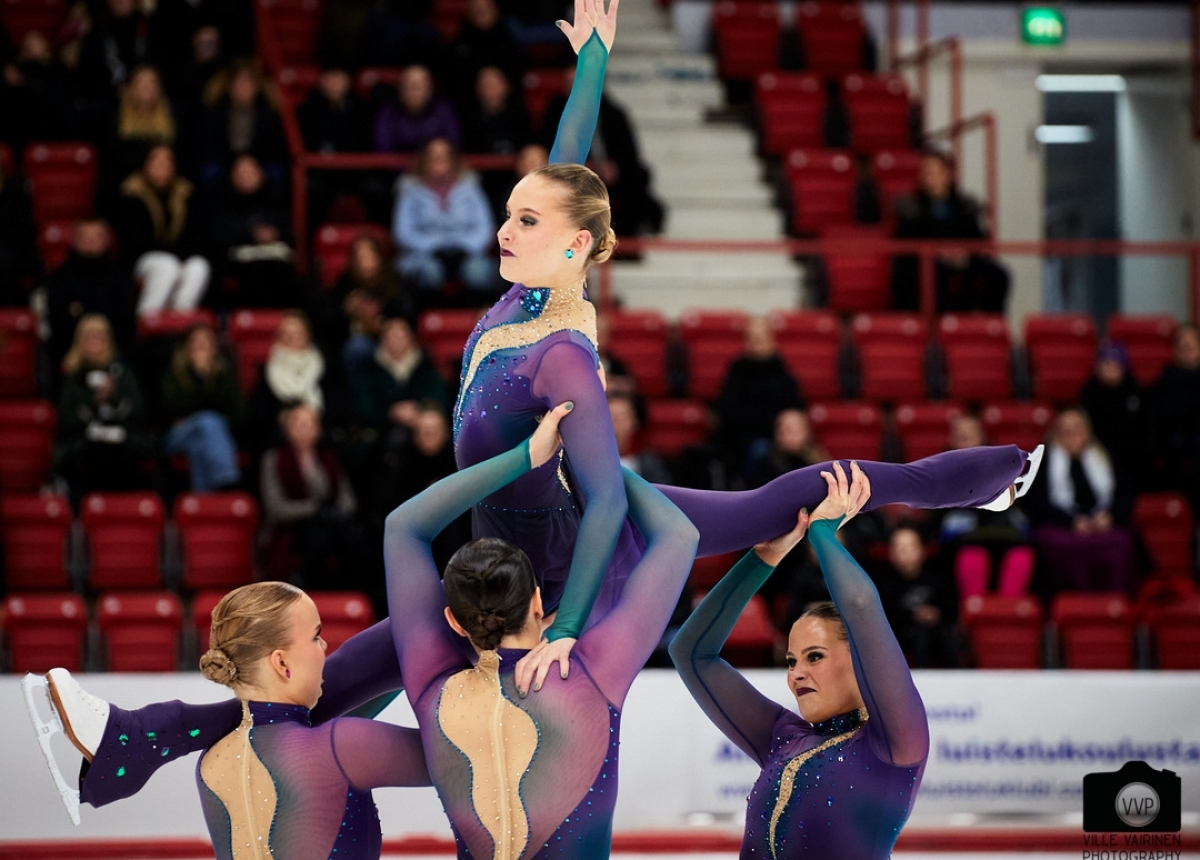 The Finnish team Starlights delivered a stunning performance in the Novice ISU Free Program, earning the top spot. Their routine, marked by elements like a ME4 and and I4, achieved a total score of 89.43 !