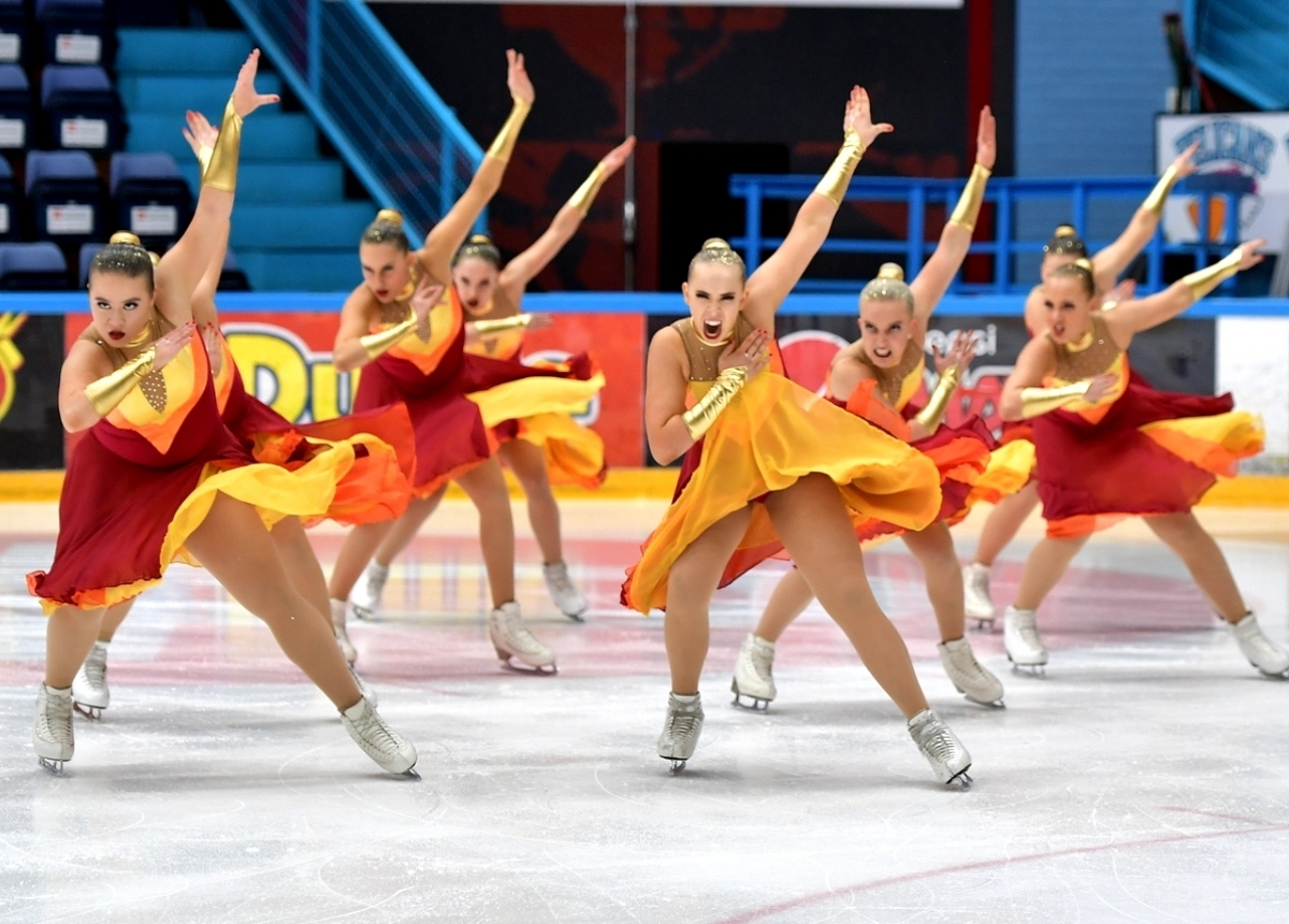 Le Team Dynamique a remporté la médaille d'or avec 80,07 points, mais Valley Bay Synchronics n'était pas loin derrière. L'équipe a obtenu 79,84 points pour son programme "Hitcock's Rear Window". Aucune des équipes n'a présenté une performance sans faute. Valley Bay Synchronics a eu une chute pendant les twizzels et le Team Dynamique a été inexact dans plus d'un élément.