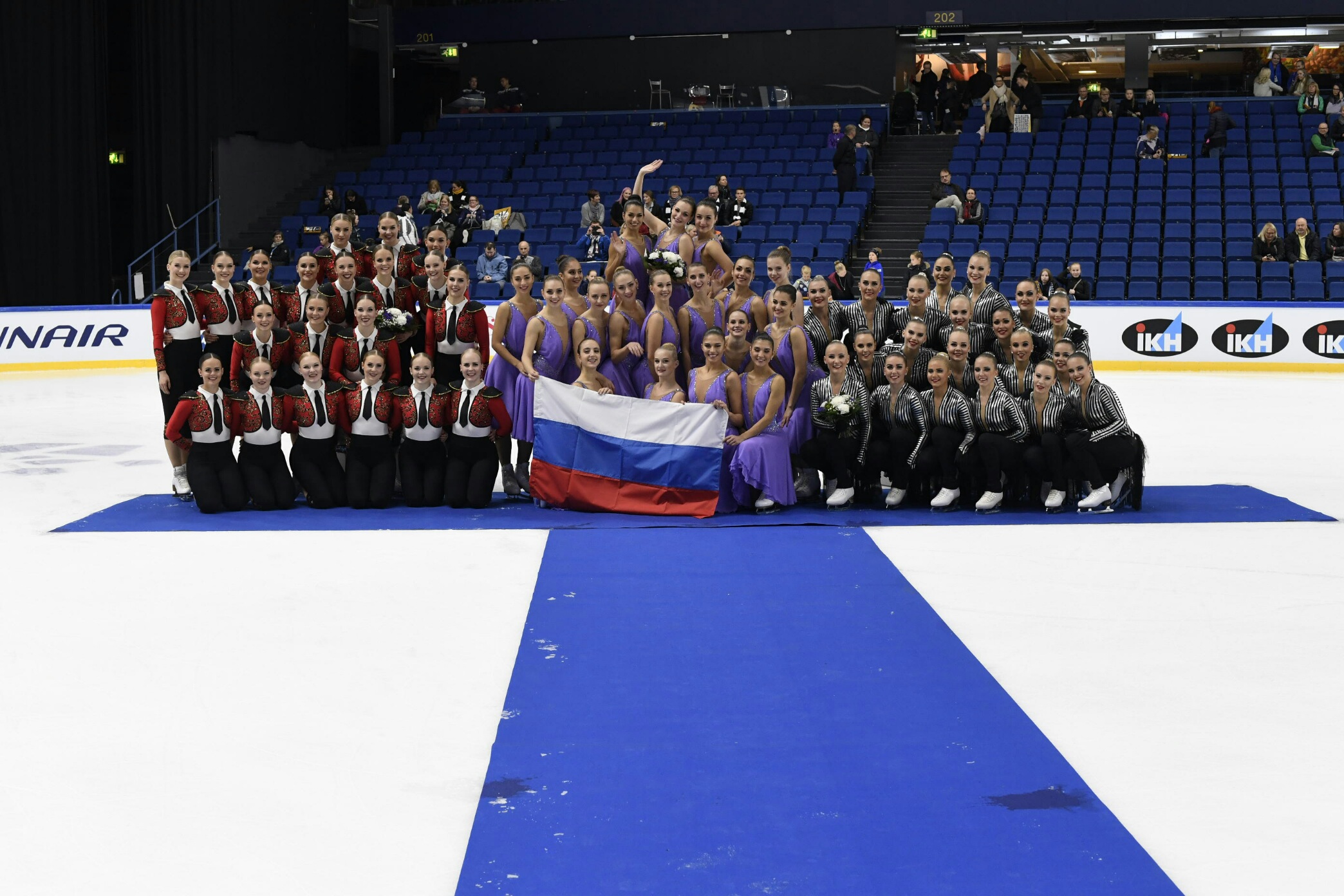 Team Paradise (RUS) débute cette saison aussi fort que la saison dernière. L'équipe a remporté la compétition avec 65,61 points. Team Paradise a présenté un programme très classique et délicat sur la musique de "Listen" de Beyonce avec beaucoup de nuances. Le médaillé d'argent à Espoo cette année c'est Marigold Ice Unity (FIN) qui a engrangé un total de 64,57 points. Le programme intitulé "Matadors" a été conçu dans un style très espagnol avec une musique de Paso Doble. Leur cercle était par exemple particulièrement innovant. En troisième position, le Team Unique (FIN) qui totalise 62,04 points. L'équipe, qui a débuté la compétition, a présenté un programme très énergique et original nommé "TU goes Ramalama".